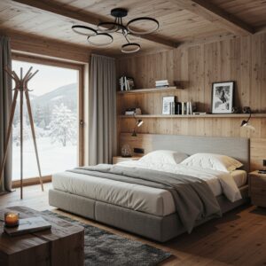 The,Room,Has,A,Warm,Décor,With,Wooden,Beams,On